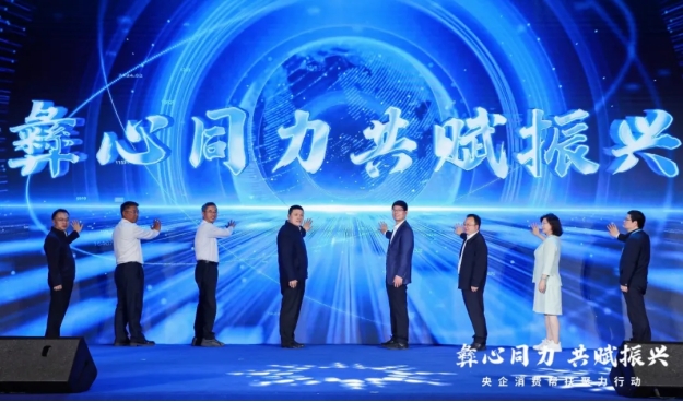 与会领导共同为央企消费帮扶聚力行动之“彝心同力 共赋振兴”购物节按下启动键。