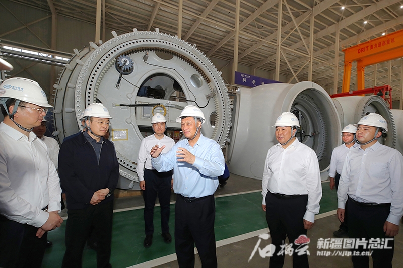 ▲5月19日,马兴瑞走进新疆东方风电新能源有限公司生产车间,详细了解风机等设备生产制造情况。石榴云/新疆日报记者 崔志坚摄